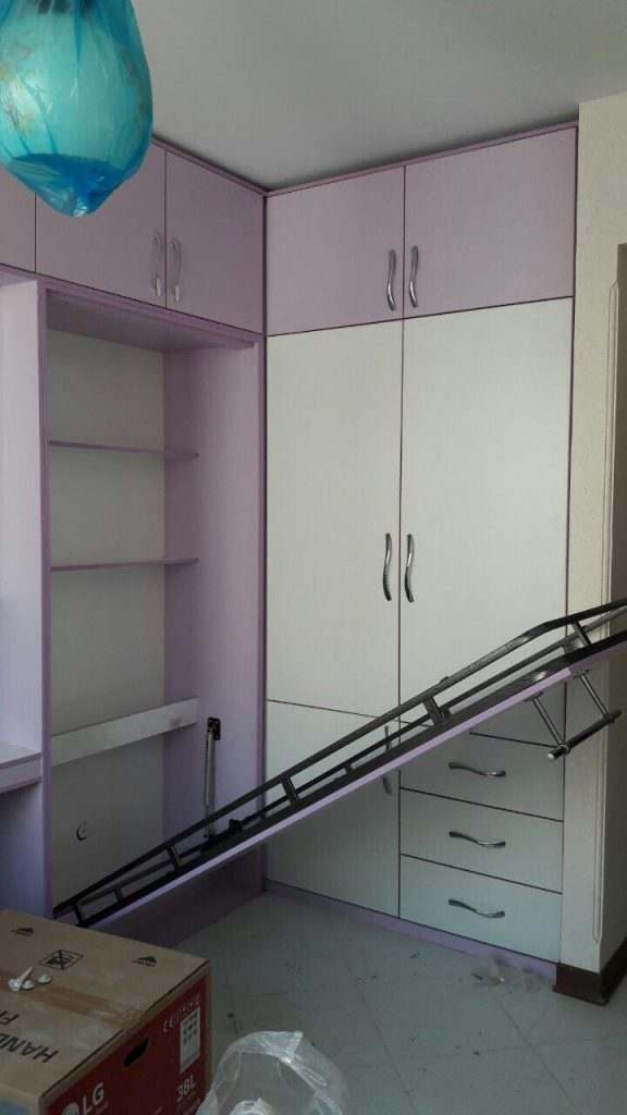 اگر شما مجموعه ای از کمد و تخت کم جا برای قسمتی از اتاق خواب درنظر داشته باشید قیمت بصورت متر مربعی 350000 تومان محاسبه میشود و هزینه جک به کل فاکتور اضافه خواهد شد  . (برای تخت یک نفره مبلغ 400000 تومان و برای تخت دو نفره مبلغ 700000 تومان )